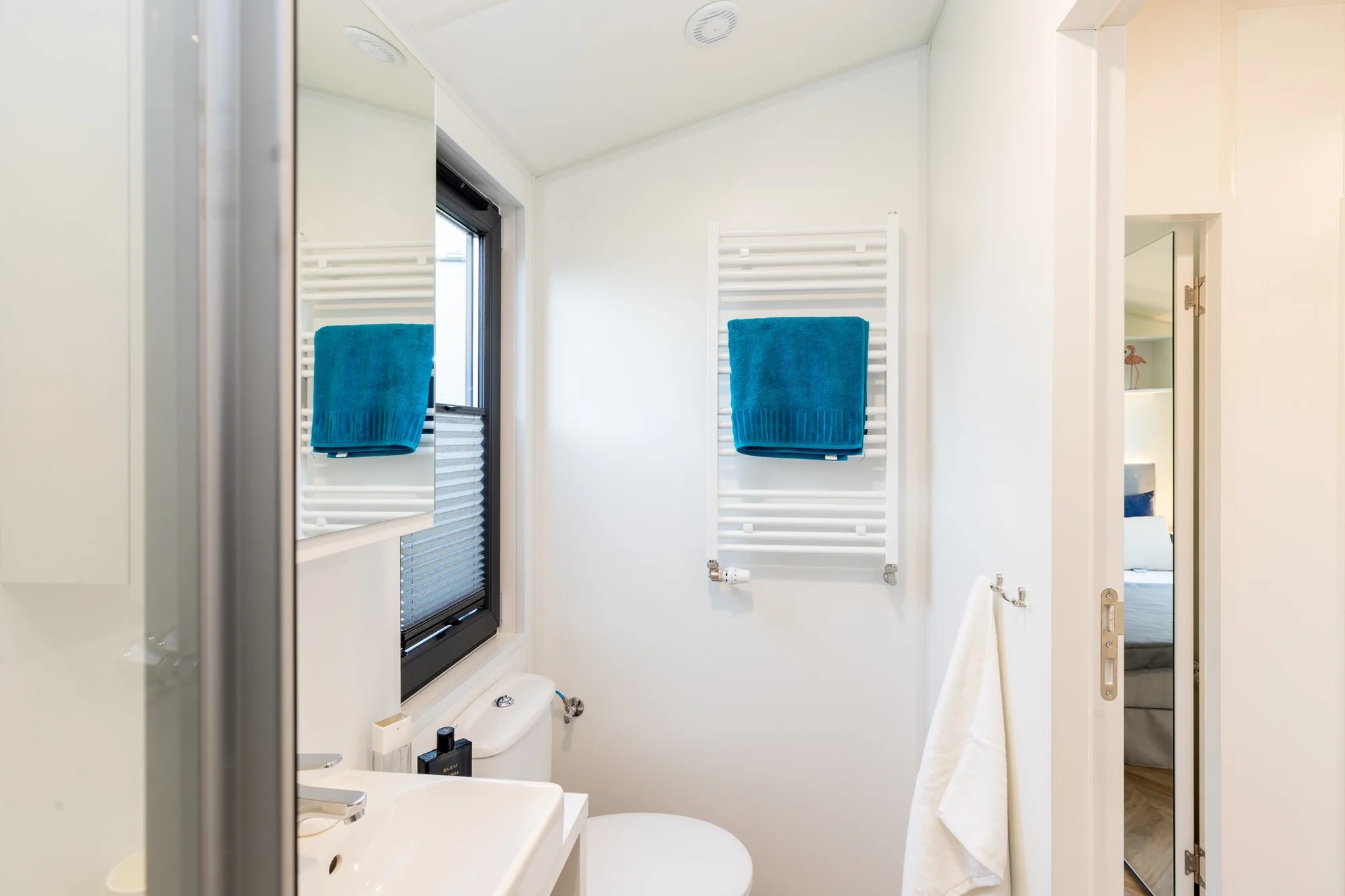 Casa móvil moderna Milford 34,4 m² construida en alerce siberiano aislante con salón luminoso zona día/noche separada, cocina exclusiva y climatización completa gas/aire acondicionado.